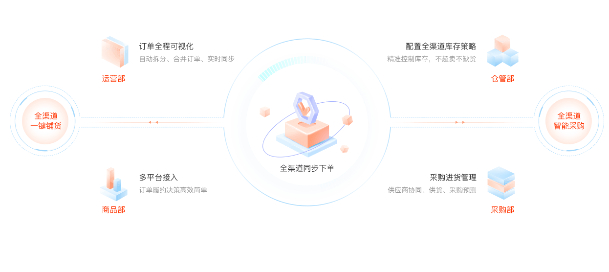• 全渠道鋪貨、全渠道下單、全渠道采購,實現訂單統一管理,店鋪經營更高效